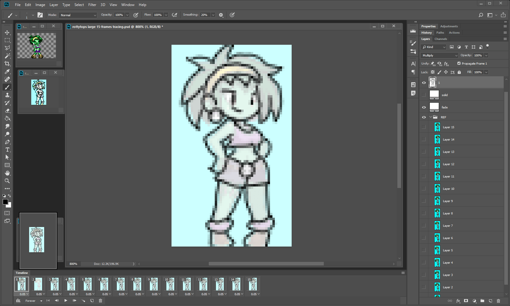 I experimented with a bilinear resizing technique where I quickly traced the large version of Rottytops from Shantae Half-Genie Hero and turned it into a small sprite similar to the one in Shantae Pirate’s Curse.