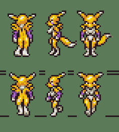 Now it’s Renamon’s turn. Her palette was easy to figure out because she only had 3 overall colors. But I still limited it to 2 shades each to match Chrono Trigger’s style.