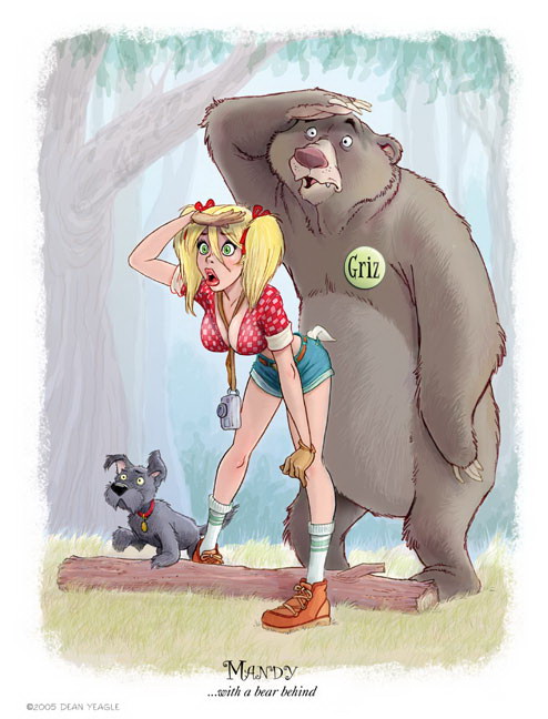 # His style is “Sexy innocence.” There’s something I love about the concept of an oblivious bombshell. Dean Yeagle’s “Mandy” character is kind of like an older version of my Ridinghood character. But his art has a much more playful approach to sexiness. She kind of looks like a more innocent version of Harley Quinn