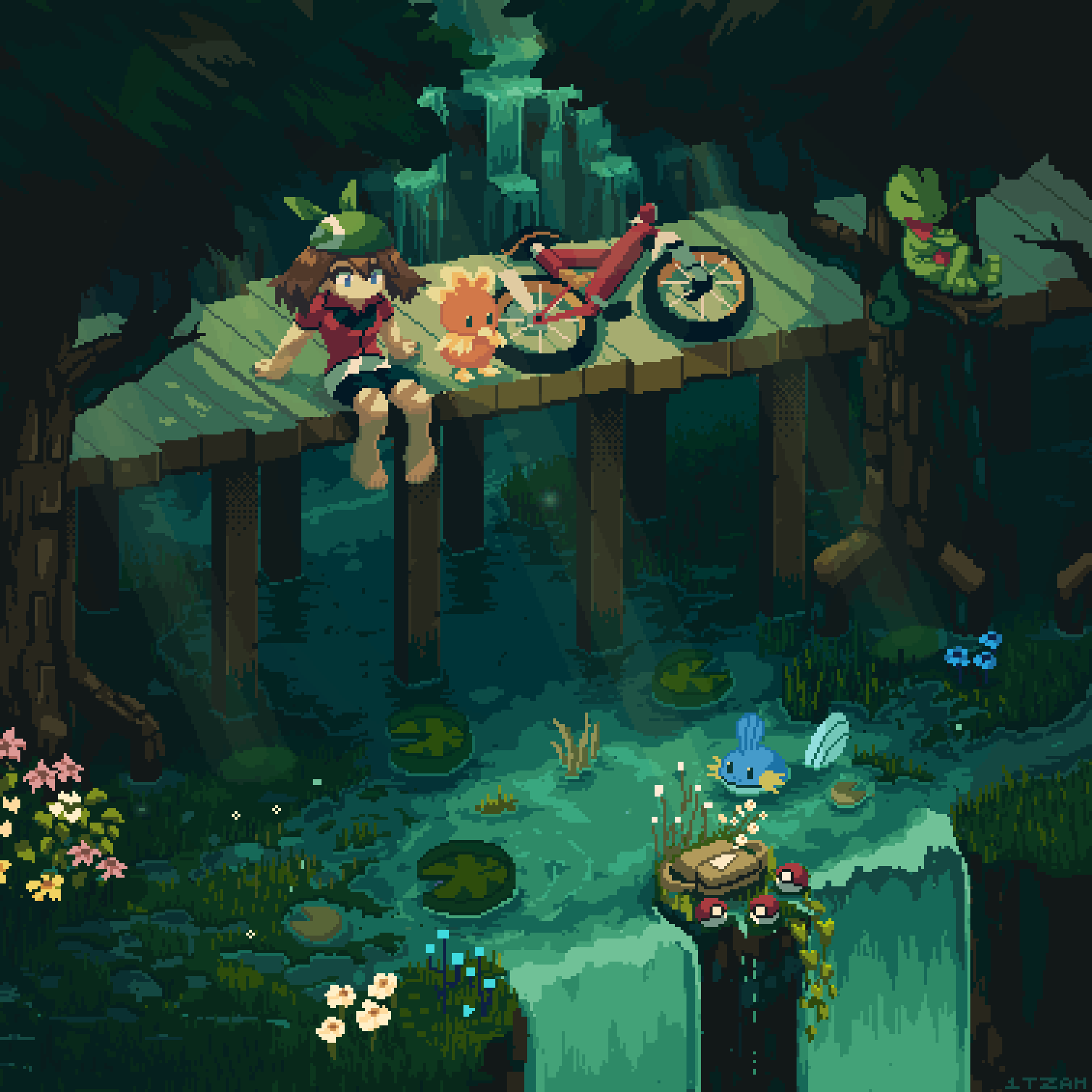 # They create some very cool looking sprite-like artwork. It’s more of a pixel art style rather than actually being limited to any particular palette or limitation. It’s interesting how they devote more palette colors and details into the shadow areas.