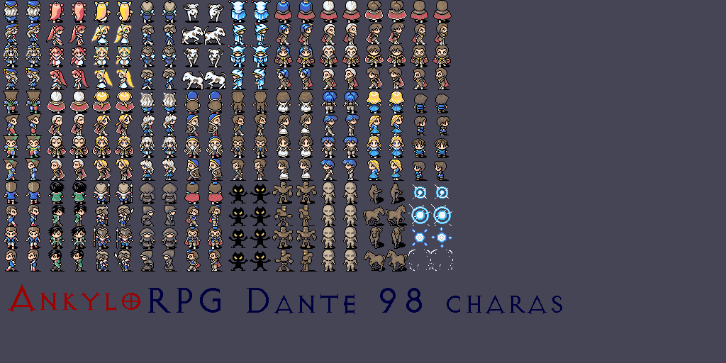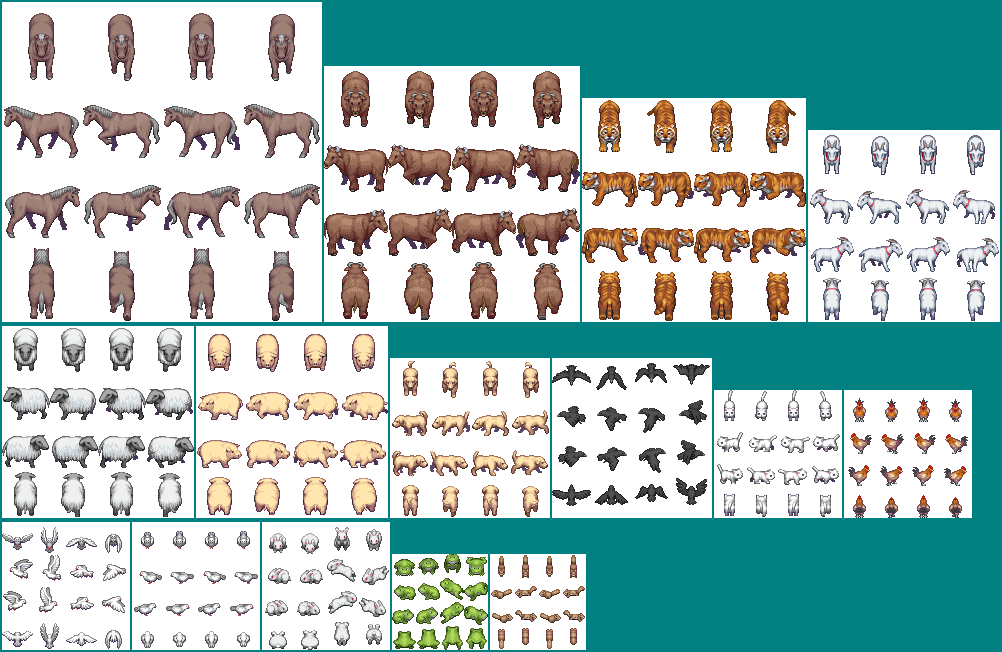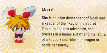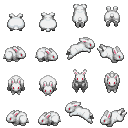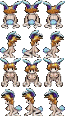 My infamous bunnies. The small sprite came from Tales of Phantasia for the Super Nintendo. The large one came from the official RPG Maker XP character set. The first time I used a bunny was in my