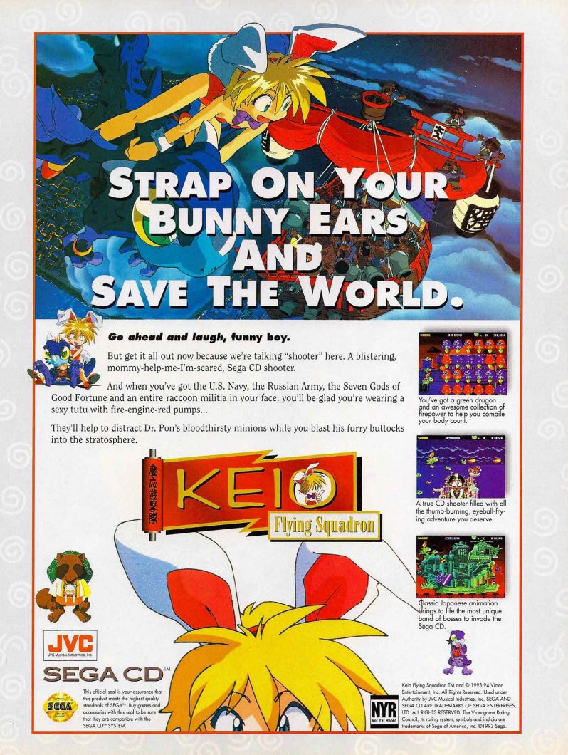 Bunnygirls are a character race I created from scratch. This sprite doesn’t look particularly good since I was still learning how to use Photoshop way back then. In the days before I even had an internet connection I scanned in a blurry magazine screenshot of Keio Flying Squadron, and turned it into this sprite. She was going to be in a ridiculously ambitious old game I never made called “RPG Override.” I wanted to have a race of endlessly horny bunny girls who used humans to breed more of themselves, and had magic that allowed them to dig underground to create nests or sneak into places… I was a horny 14 year old, okay?