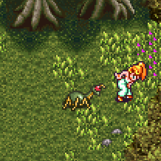 Lilly is from Illusion of Gaia for the Super Nintendo. I don’t think there was any specific reason I ripped her sprite. I copied a lot of characters from that game because at one point I considered creating a full parody of it. For some reason she tends to end up with a sarcastic personality. Sometimes even slightly mean. I think that’s just how she looks. Short punk hair = punk personality.