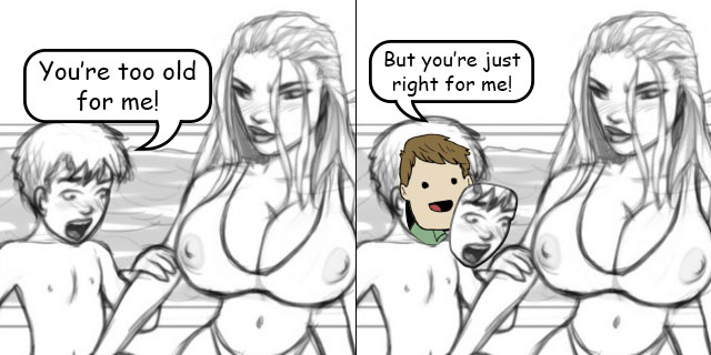 # But if you relate to a character, imagining yourself in their place, then you simply experience the situation as yourself from their vantage point. But you take your own preferences along with you. Older women are used in straight-shota scenarios to suit the older audience’s preferences. They also help create an authority imbalance to put the viewpoint character into a sexy situation.