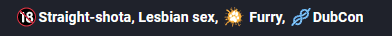 # When people are reading social media, they’re expecting to see things described in plain English, not abbreviated slash-pairings. And while I can use a few common emoji to indicate general things like “sex” and “furry”, I don’t have precise control over the symbols and colors so I can’t use my website’s custom pairing icons.