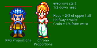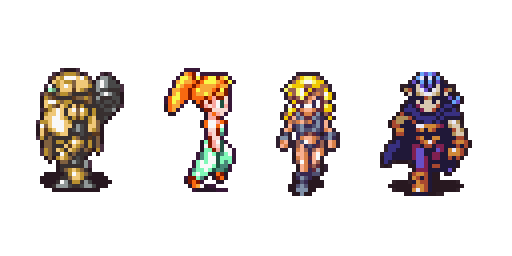 # There is a lot to love, and barely any flaws I can bring myself to notice. But if I had to pick my absolute favorite thing about Chrono Trigger it’s the sprite art. I don’t know of any other RPG on the Super Nintendo that uses these proportions for characters. It’s almost 3-heads tall, but the torso is smaller to make room for longer limbs to make the poses clearer, the ladies sexier, and to give the large heads more expressive eyes.