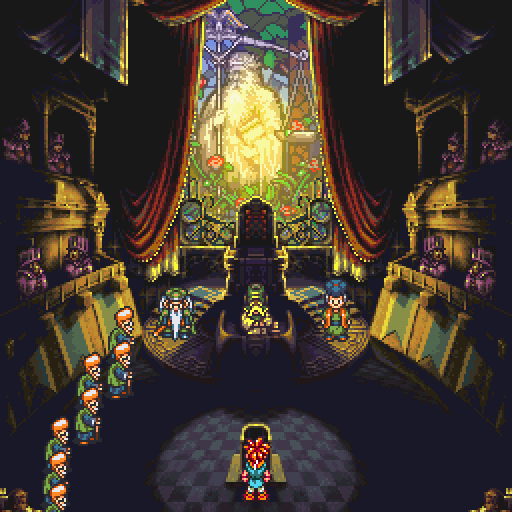 # I know I am biased. I know that games with better graphics have come out in future decades. More great stories. More genres. More exploration. Goddamn open-world games! And of course that whole… 3D thing. So in my heart, Chrono Trigger mostly represents a pinnacle of 16-bit games. Over the past 30 years I have replayed this game so many times that it’s honestly hard to really experience it anymore. Every strategy and movement has been committed to muscle memory. My eyes glaze over because I barely have to think about the game. I’m on auto-pilot. So instead I study it. Every pixel. Every story beat. Every clever design choice. The game is just 16-bit perfection to me. Yes I am absolutely biased, and I don’t even care.