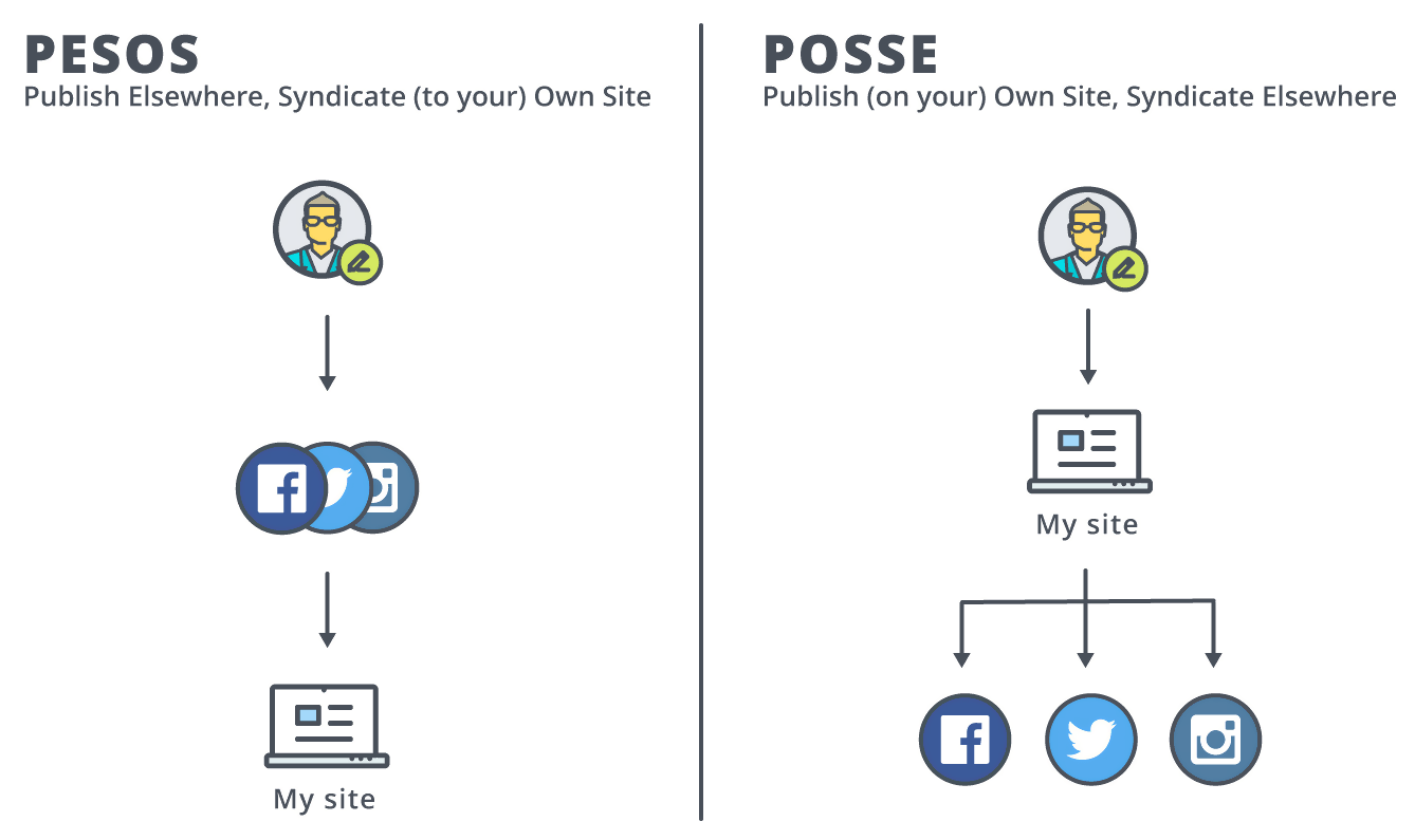# At one point Twitter stopped letting me request my feed as a JSON file. They wanted everyone to use THEIR official widget(tm) which only contained the data as pre-formatted HTML. No problem I’ll just load their widget invisibly, jQuery that bitch to extract the data I care about, throw it away and turn the data back into JSON so I can keep displaying my own posts the way I want, even the ones with adult content. And I actually pulled it off! … partly. It turned out there was another problem. Twitter was only giving me the last 50 posts. But I had projects going back for years! I wanted TOTAL ACCESS to my own data, and Twitter wasn’t giving it to me… so I took it. I downloaded my Twitter archive, wrote a program to convert it’s ugly JSON into much simpler JSON, and uploaded that directly to my website. Then I wrote a program that would let me write new messages and upload this JSON file AND post to my Twitter account at the same time. Post on your own site and syndicate elsewhere. I had accidentally discovered the IndieWeb concept of POSSE.