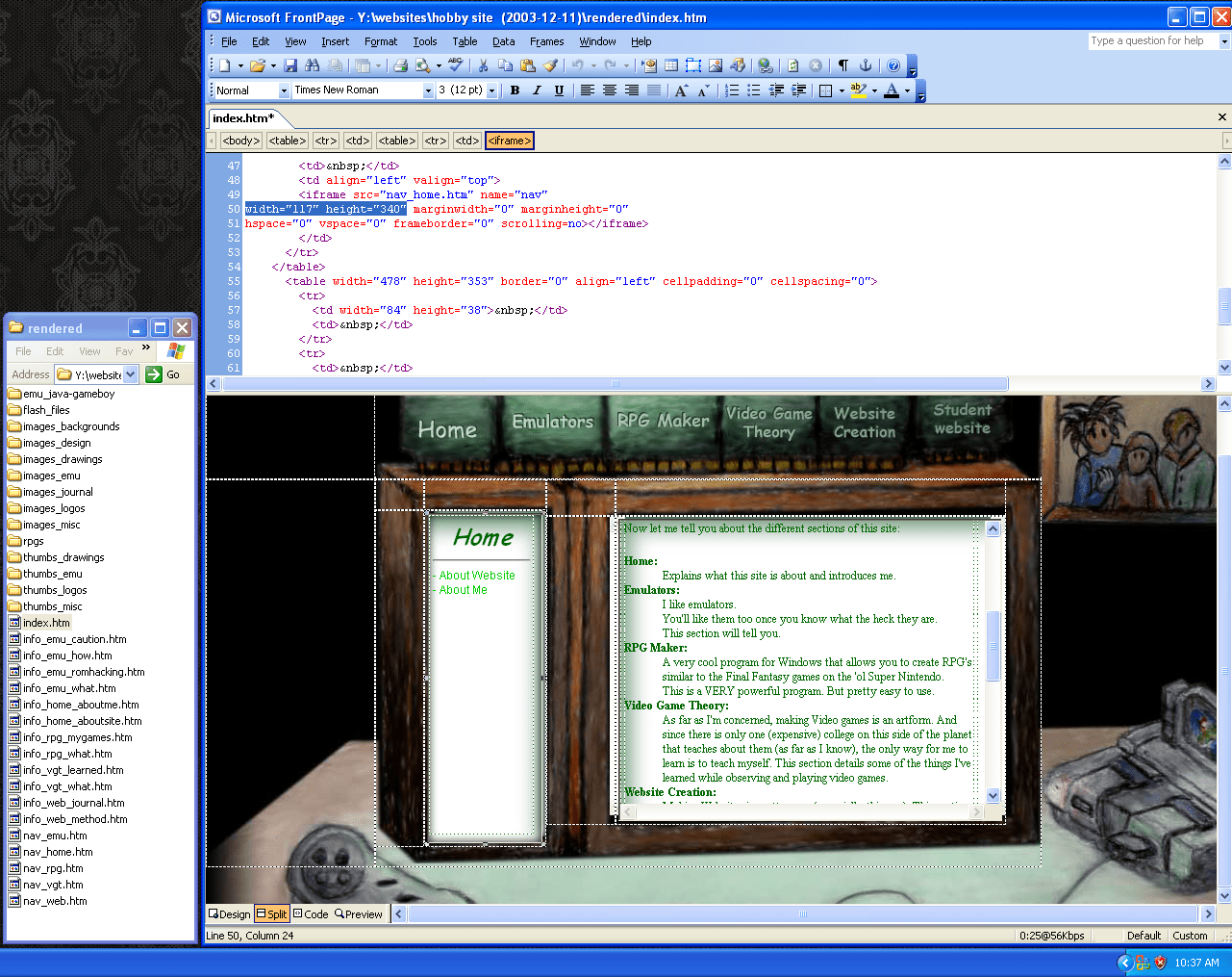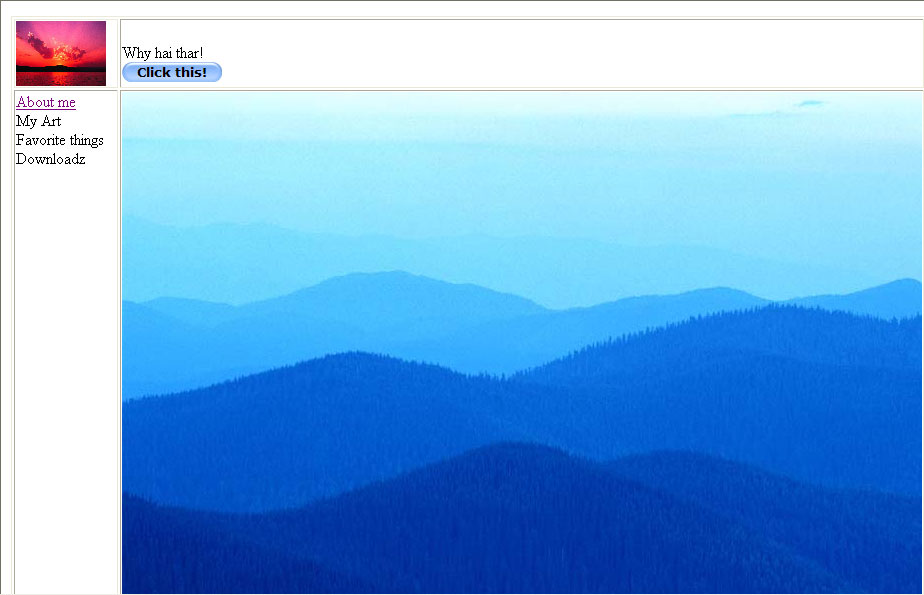 # That was how I built a website back in 2004. It doesn’t even use CSS. Hell it barely even uses pictures. It’s mostly just one giant background picture with areas you can click. Behind the scenes it’s a table and a couple of invisible iFrames. When I click the buttons, the pages get loaded inside those areas. No JavaScript. It was 100% HTML.