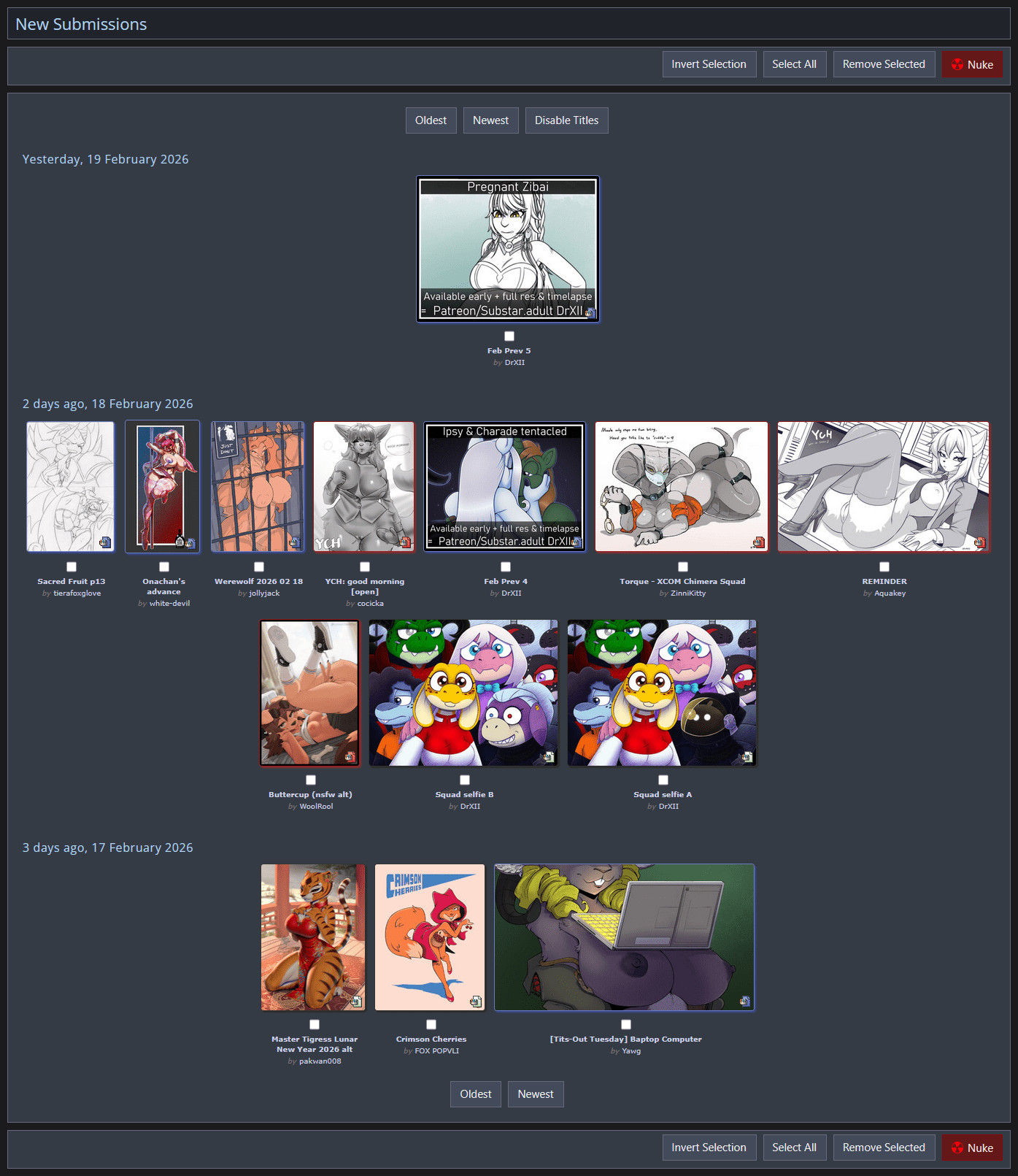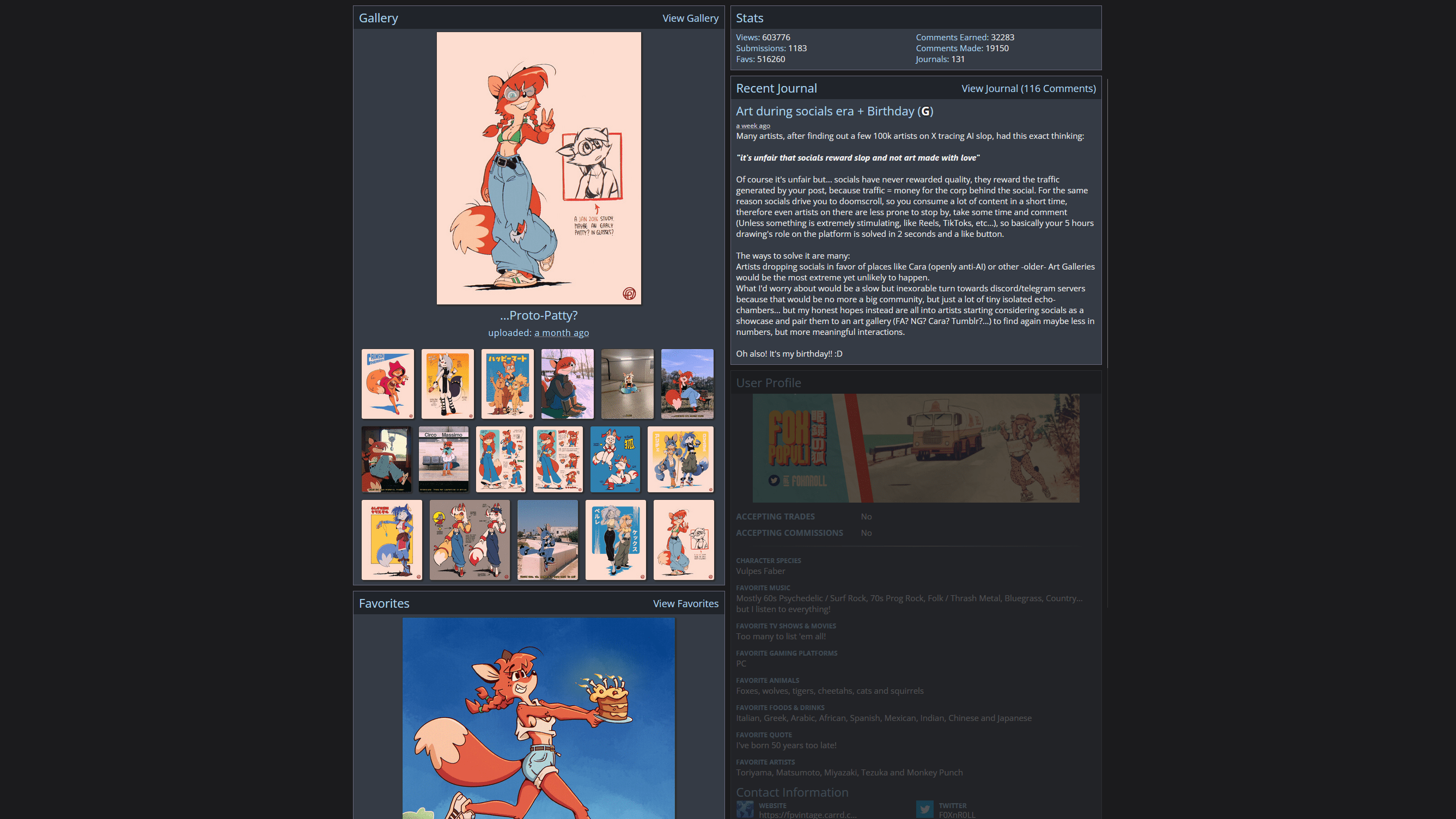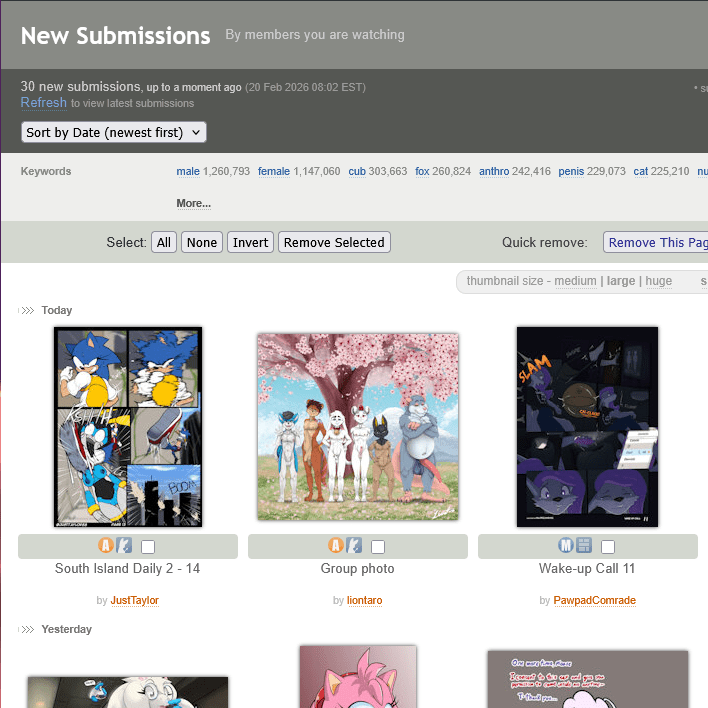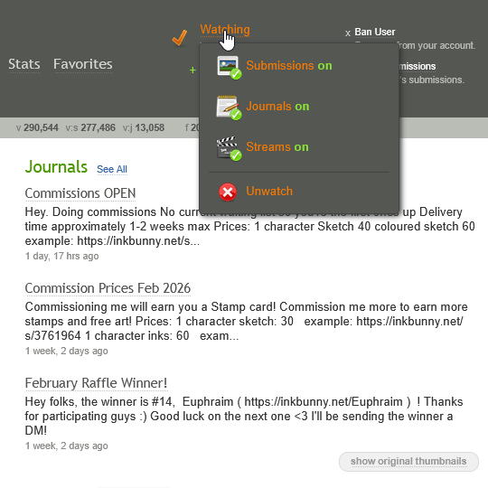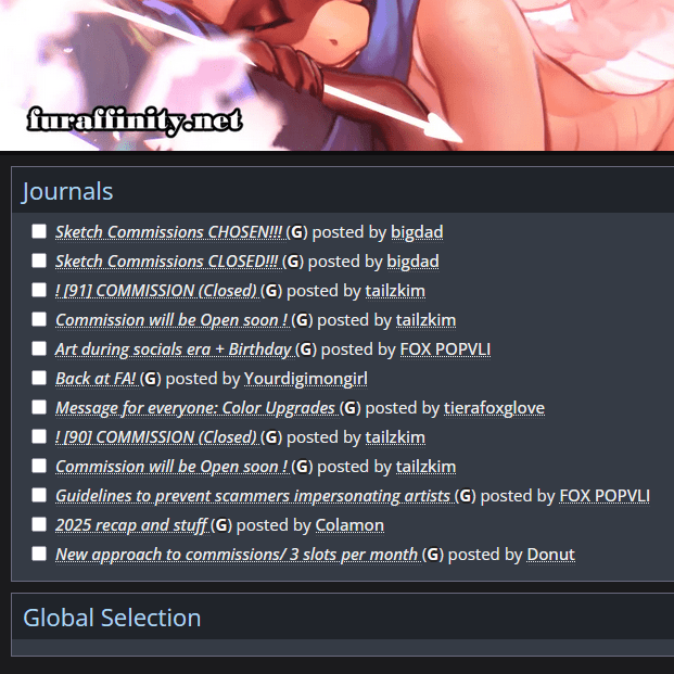 # For example, FurAffinity separates an artist’s page into 3 sections: