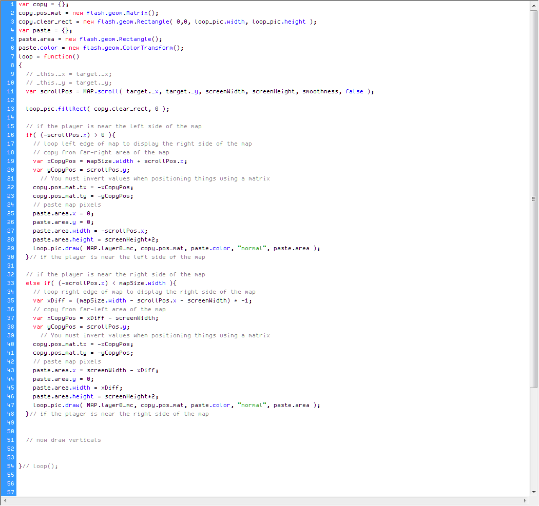 # And I can continue using scrollRect for fast scrolling the same way I already do instead of making additional draw() calls, so the performance will stay exactly the same.