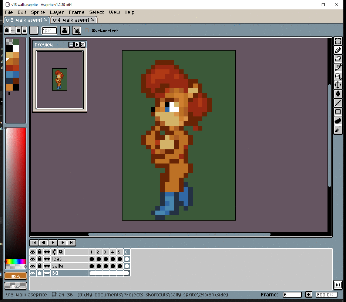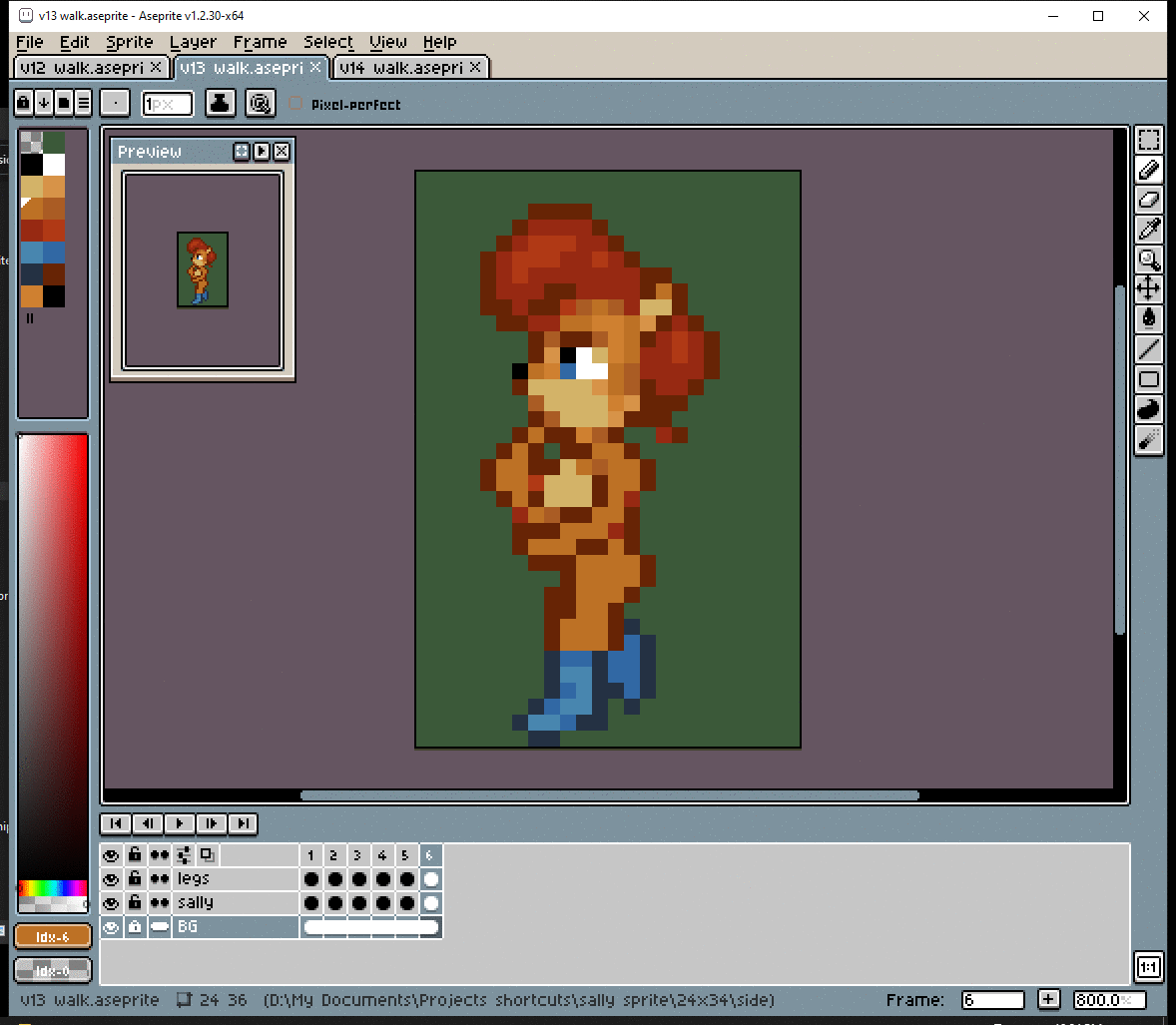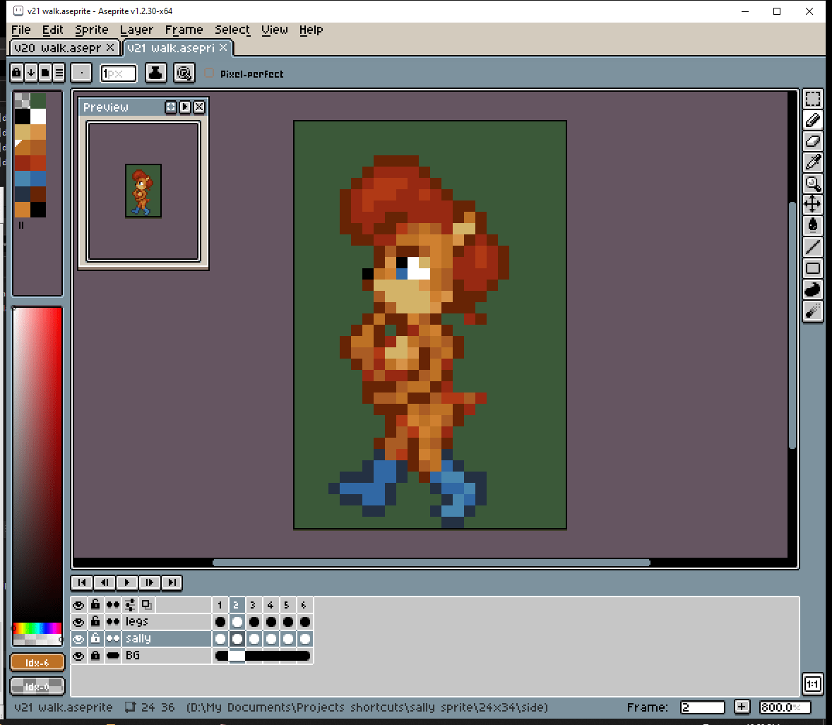 # Okay, before I dive into making the walk cycle, I should figure out her pose. The way she walks should show her personality. Well… nothing too crazy, but Sally IS a thinker.