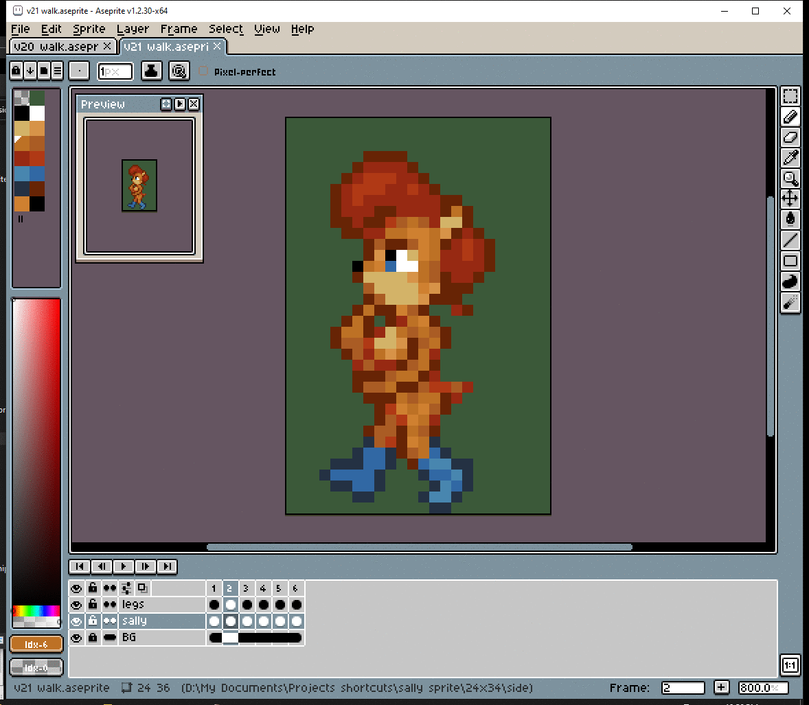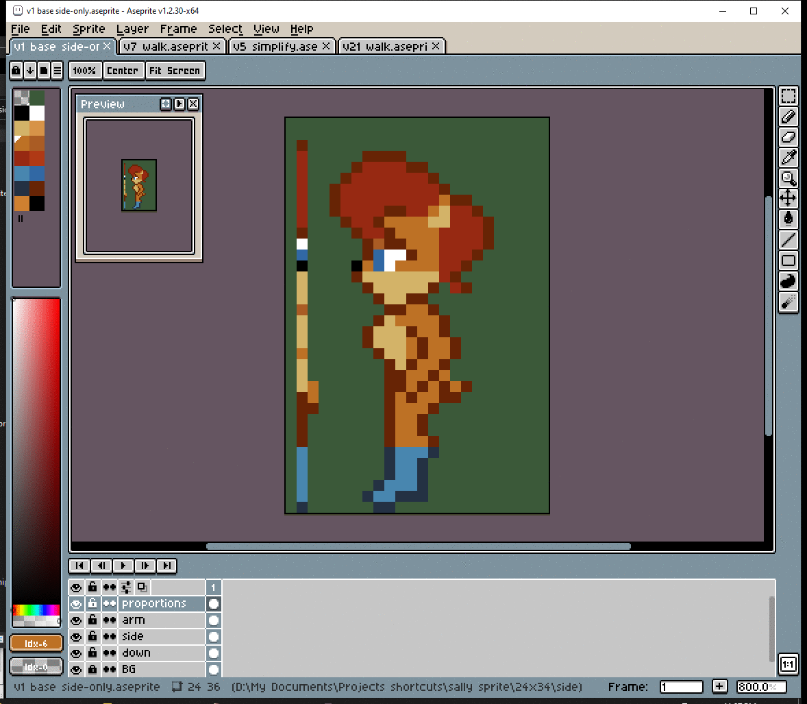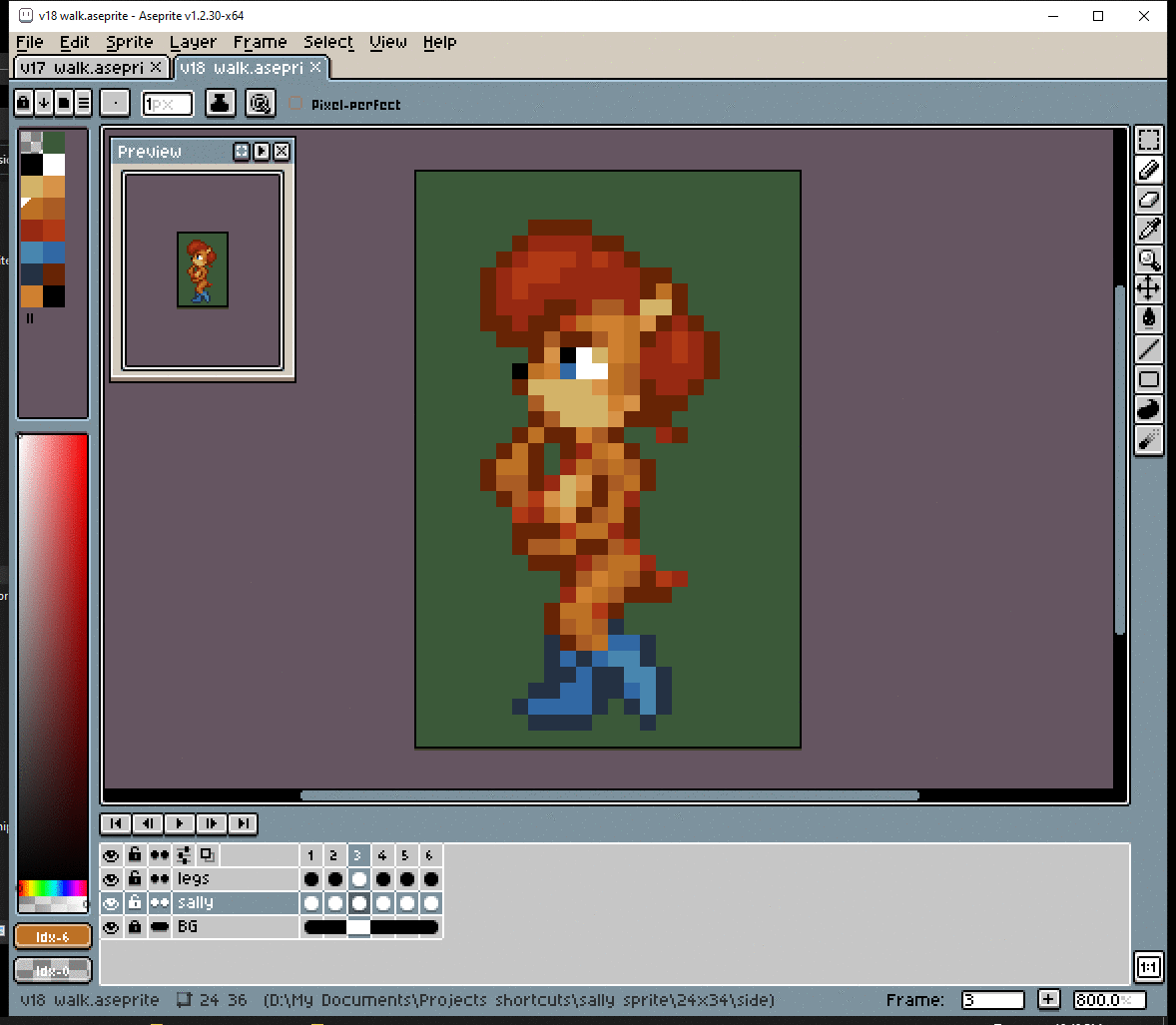 # Okay, before I dive into making the walk cycle, I should figure out her pose. The way she walks should show her personality. Well… nothing too crazy, but Sally IS a thinker.