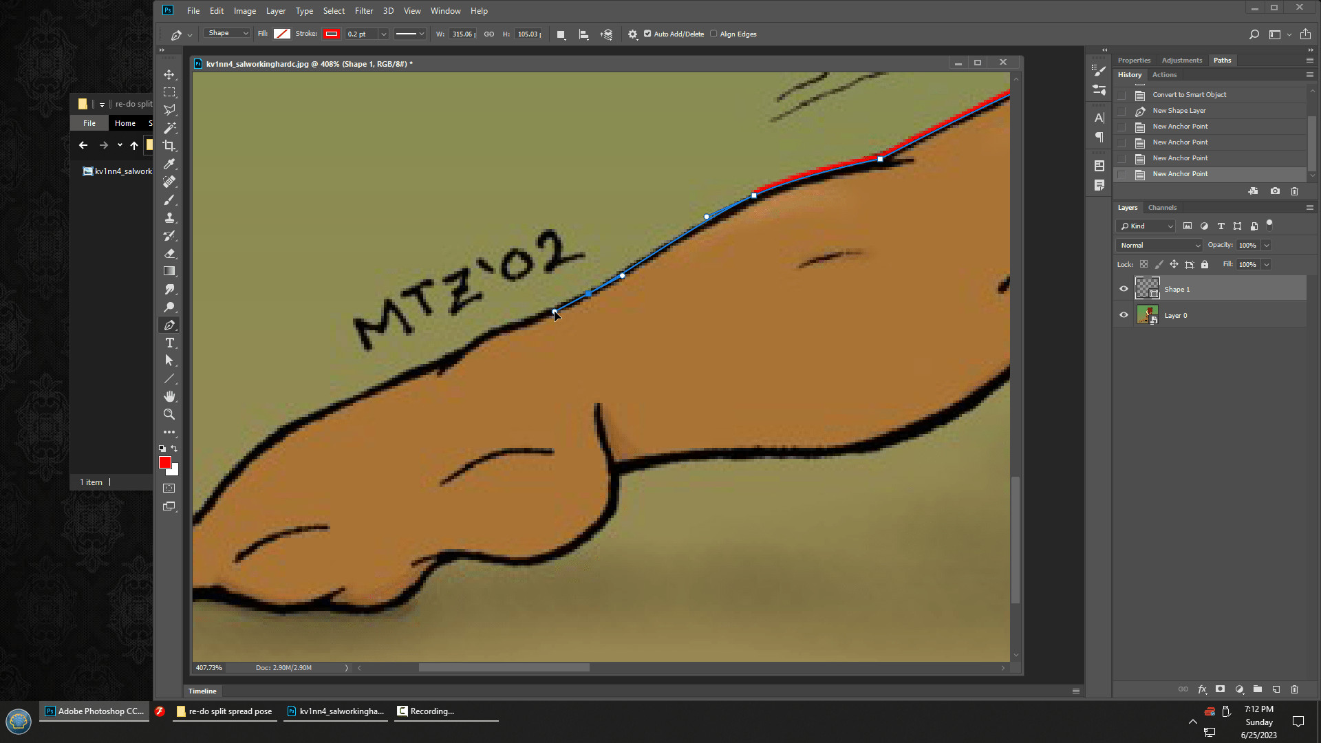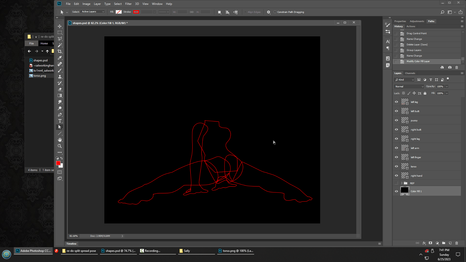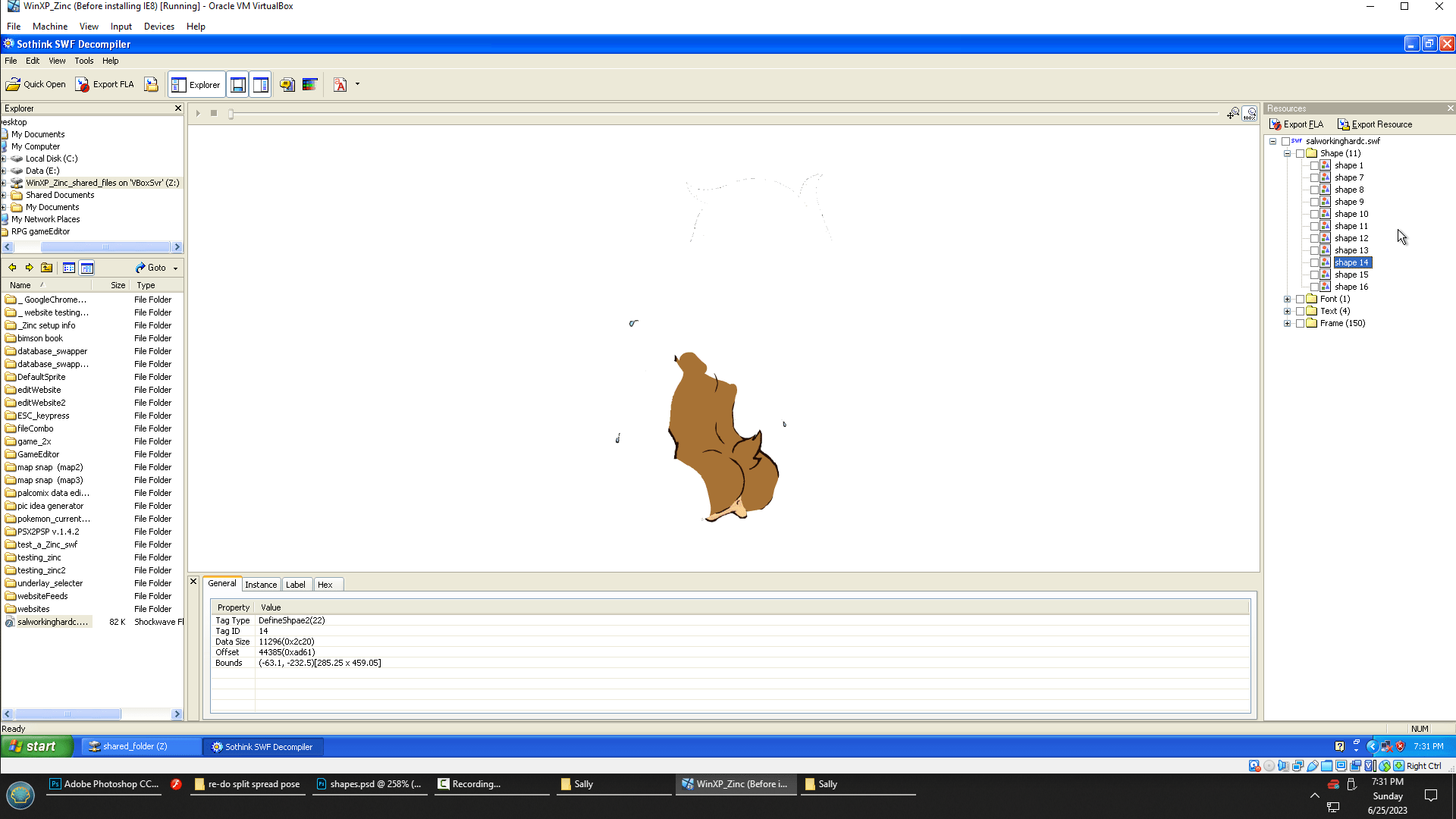 # … or I could grab the torso from this old Flash animation that MaskedMustelid created way back in… I dunno, 2014? That’s when I downloaded it, but it might be older. The original drawing was from 2002. Wait, I might know a way to check.