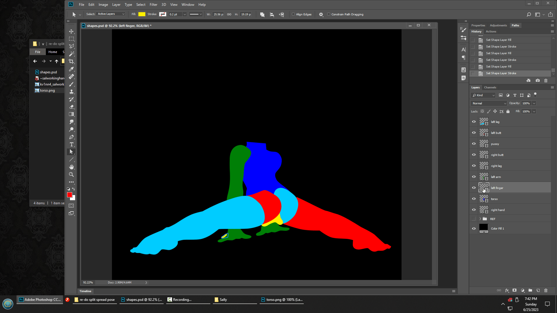 didn’t quite look right. I put too much thought into realism of anatomy and joints, and lost the tension of the pose in the process. The tight stretching of her legs shows what she’s feeling.
