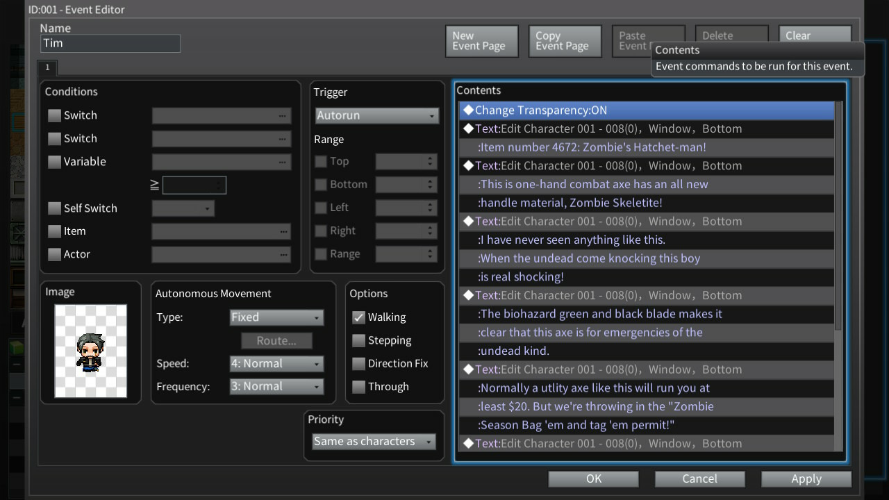 Wow, the Nintendo Switch version of RPG Maker is downright painful to use. The menu controls are clunky as hell. It forces me to dig into multiple layers of focus just to press a button that’s already on the screen, and the touch-screen is laggy and imprecise. I guess I’ll try to bear with it. It’s all part of the challenge, right? Surprisingly it doesn’t seem to block any naughty words. But maybe it only checks that when you try to upload a game?