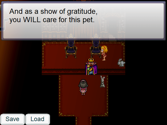 A game about a king and his pet rabbits adopting lots of princesses for mysterious reasons.