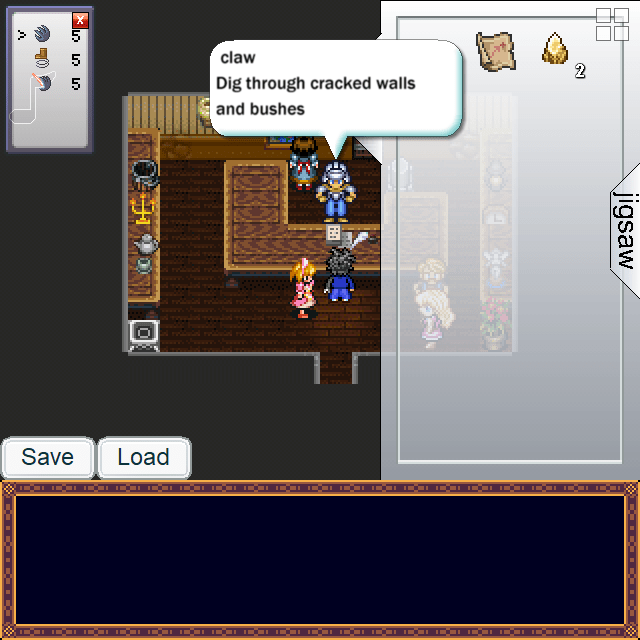 That turned out to be a mistake. My game didn’t have combat or treasure hunting, and those maps were specifically designed for that. After almost a year I just had a game where the player wandered through a bunch of empty dungeon rooms looking for the interesting scene at the end. So I decided to add gameplay to make it interesting. That’s right, after finishing the story and maps, that’s when I starting figuring out the gameplay. This entire thing was designed backwards.
