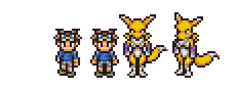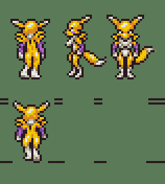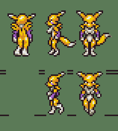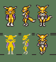 Now it’s Renamon’s turn. Her palette was easy to figure out because she only had 3 overall colors. But I still limited it to 2 shades each to match Chrono Trigger’s style.