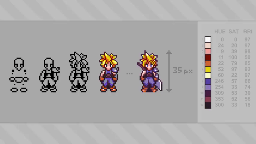Brandon also made an interesting observation about the game’s palettes. They’re smaller than they need to be. Most characters only have about 12 colors even though the Super Nintendo draws sprites using a 15 color palette. (16 if you include transparency)