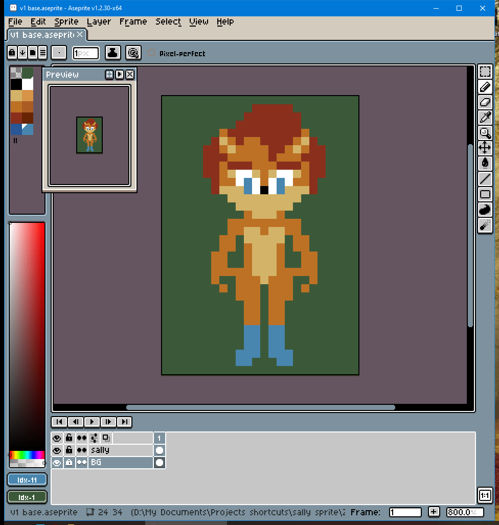 His sprite construction approach is a bit different from mine. I like to focus on shapes first and then draw outlines around them. He starts with outlines first and then fills them.