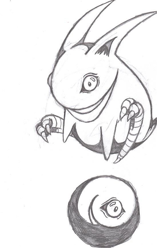 For this picture, I decided to be a cheap bastard and trace the pose from a couple of other pictures. That doesn’t mean I didn’t do any work. This picture took quite awhile to create. It turns out there’s almost zero reference material for the Rolies from Chrono Trigger… almost. I did find this. It’s from a very old miniature Chrono Trigger cartoon in full 300i VHS quality! Much more useful was this drawing by Phycosmiley, which shows a nice style for the feet. Beyond that, I had to improvise something resembling anatomy for the Roly. Unlike most of my pictures, I decided to draw this one 100% digitally using Paint Tool SAI. I wanted to see how helpful my new Wacom tablet would be for drawing. Turns out… not so much. Chalk it up me being rusty. But I did cobble together a decent approach: Do a very rough sketch with the tablet using the “pen” tool. Then ink it with the mouse using the “curve” tool. The color and shading is all Photoshop. The tablet is pretty helpful for this, especially when it comes to creating hair.