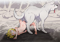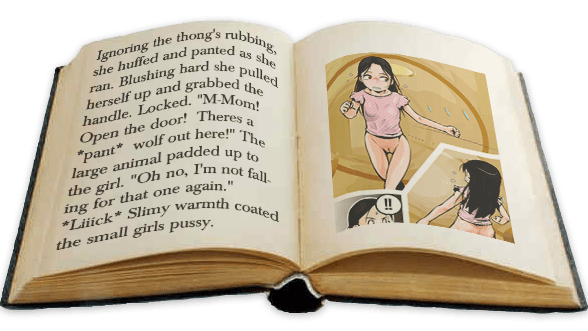 F/f Animal/f ==================== Red nudged her bedroom door a crack and peeked into the kitchen. "Darn" she pouted. Her Mom was already awake. The girl eyed the bottle of wine of the kitchen table. "How am I going to get her away from there?" She whispered, tapping a finger against her cheek. Just then, the girl heard a faint wolf howl outside. Shivering in her nightie, she walked over and closed to her bedroom window. The dim morning light barely lit the nearby forest. "Wait, I have an idea." she grinned. Opening up the window, she leaned out and shouted. "Help! Mom! There's a wolf out here!" The chair in the kitchen fell over. "Red?? What's wrong? Why are you outside?" It worked! The girl quickly tip-toed out to the kitchen and grabbed the wine off the table. Hugging the bottle to her chest, she darted back to her room. Heart racing, she quickly took a big gulp. "Hee, this stuff's good!" she swooned. Red loved the way it warmed her body. The way it made her tingle, especially... down there. She sat on the floor, squeezing her legs together and apart. Suddenly her door flew open. "Ah hah! There you are, you little thief!" The girl jumped. *Crash* Wine splattered all over the floor as the bottle shattered into a million pieces. *Slam* Red glanced back at the front door. "And dont come back until you get me more wine from your Aunt Selmie!" The girl stared nervously at the dark woods, shivering in her nightie as her bare feet stepped on the cool grass. Everything was silent. Even the birds were not awake yet. Her stiff nipples poked against her night gown as she climbed over a dead log onto the dry leaves. *crunch* *crunch* She tried to ignore the breeze tickling her thighs. Looking back at her house Red couldn't tell if her mother was watching, so she took a hard left and wandered into a thick patch of trees. A large oak leaned across a dry riverbed. Ducking under the bark, Red unbuttoned her nightie and rubbed at her nipple. 'Mmm...' *Crunch* *crunch* The girl stopped. Her eyes darted back and forth across the trees. Then she looked down at her toes wiggling in the leaves. "Nobody is watching you, silly" she mumbled, and to prove it she stood up and quickly yanked up her nightie. Nothing. She waited. Nobody yelled out. The forest was silent. Her pubic hairs tingled in the breeze. "Whew" *crunch* Red blinked. One of the dead shrubs by the riverbed started moving. "W-Wha??" Then there was a growling sound as a grey muzzle emerged from the branches. "I-Its a-" The girl clapped her hand over her mouth. She didn't talk. She didn't even breathe. Slowly she stepped back under the tree. *crunch* The wolf snapped to face her. With a snarl, the canine growled as it slowed approached her. "Eep!" Red dropped her skirt and scrambled across the riverbed, But the wolf was faster and the girl nearly fell backward as the animal chomped down on the back of her night gown. "No! Don't eat me!" She frantically tried to pull away. *riiip* The bottom half of the nightie fell to the ground as she stumbled forward. woof! Woof! Bolting bach to the path, she didn't look back, and didn't stop running until she saw her aunt's house. *Bang bang* Red desperately thumped at the door. Woof! It echoed in the distance. Her heart pounded as she turned around. Far down the path a the grey wolf galloped out of the trees toward her. "Aunt Selmie! Let me in- oop!" She fell backward as the door suddenly opened. "Why Red! It's been ages!" The small girl scrambled to her feet and slammed the door. Loud scratches raked across the wood. "a wolf..." She gasped, "outside." She tried to hold the door shut. *Click* Her aunt turned the lock. Red sank down to the floor as the woman looked out the window. "You should have stayed on the path, honey." The woman smiled and leaned down to peek under the girl's torn nightie. The woman smiled as she stared down at Red's heaving chest. The girl shyly looked up, "H-Hello... Auntie" "You also should have worn a shirt." Red gasped. Her nightie was still hanging wide open! Aunt Selmie chuckled as the girl fumbled with her buttons. "Here, let me help you." The tall woman knelt down slowly cupping her hands under the girls breasts and lifted the nightie. Red blushed as the silk gently slid over her nipples. "You know, it's not every day I get to see you like... this," she teased. Red gulped nervously. "Um, Mom sent me to... Get more wine" "Oh would you like some?" Her aunt immediately stopped buttoning the nightie and skipped over to her cupboard. "It's for Mom," added Red. Selmie winked back at her, "yes, of course it is..." The small girl tried to fix the button but was quickly yanked over to the table. She sat down, "eep!" Selmie popped the cork, "What is it, sweetie?" "N-Nothing..." blushed Red. She still had no underpants on! She fidgeted with the torn edge of her nightie hanging limply over her bare thighs. A tall glass glistened as the woman poured and poured, stopping just as the wine reached the top. Red blinked, "Is that... all for me?" "My sister's too greedy. You go ahead and enjoy it, honey." "You're the best, auntie!" She cheered. The woman watched as her niece fumbled with the glass. A few drops dribbled down between the girl's breasts. After a great big gulp, Red slumped back in the chair with a happy sigh. Selmie watched the girl's chest heaving. Some of the wine dripped off the girl's nipple, still visible under the one single button she fastened. Her niece blinked unevenly, "How'd ya knoww I liked wiinne." She swooned. "Feels good, doesn't it?" Said Selmie. The girl giggled, "It makes me all warm... and tingly." "Oh really?" The woman grinned, "Where does it tingle?" With a clumsy flop, her niece threw her hand onto her arm, pointing at the floor "mmakes my arm goose-bumpy." Selmie laughed, "Is that all?" Red thumped her chest. Her aunt reached forward, "You mean... theeese?" The girl giggled and blushed as the woman tickled her nipples. "Anywhere else?" Flopping her head back in