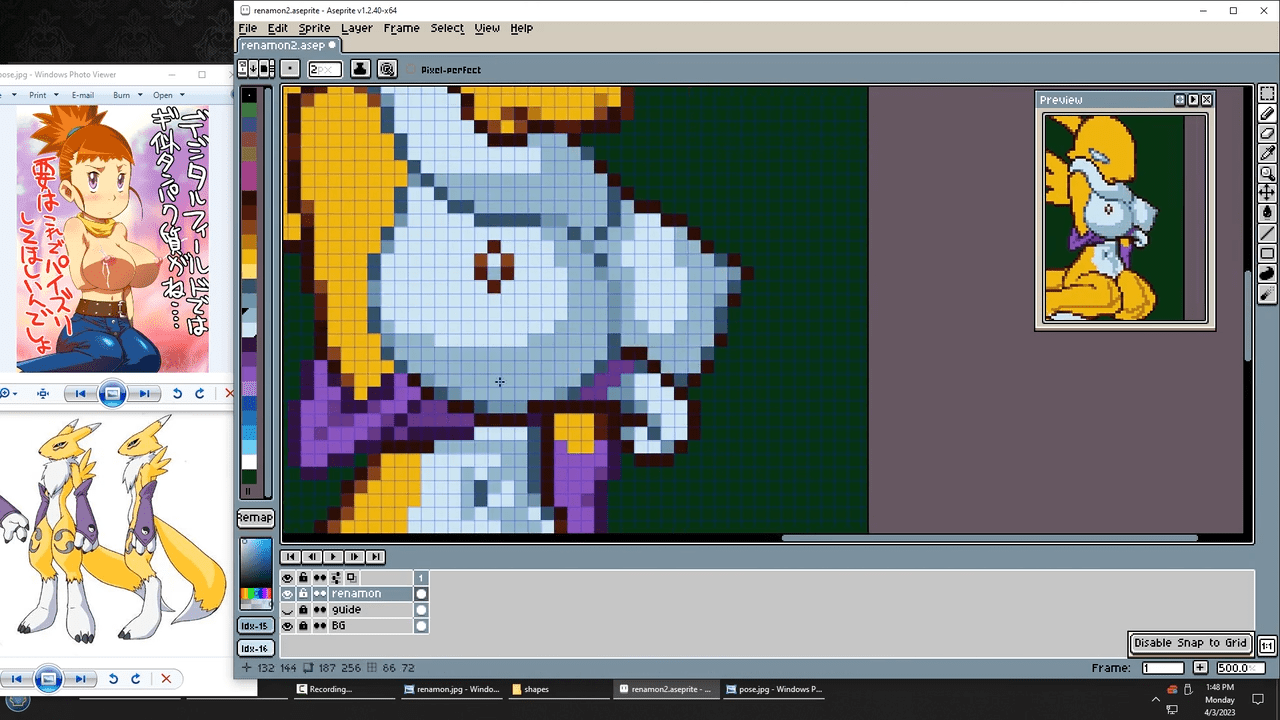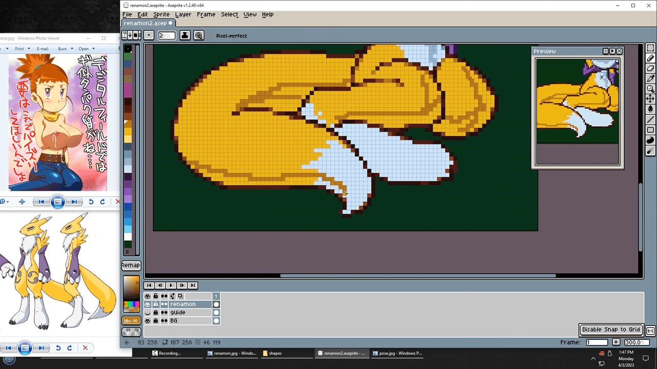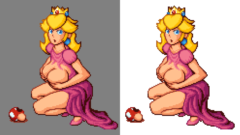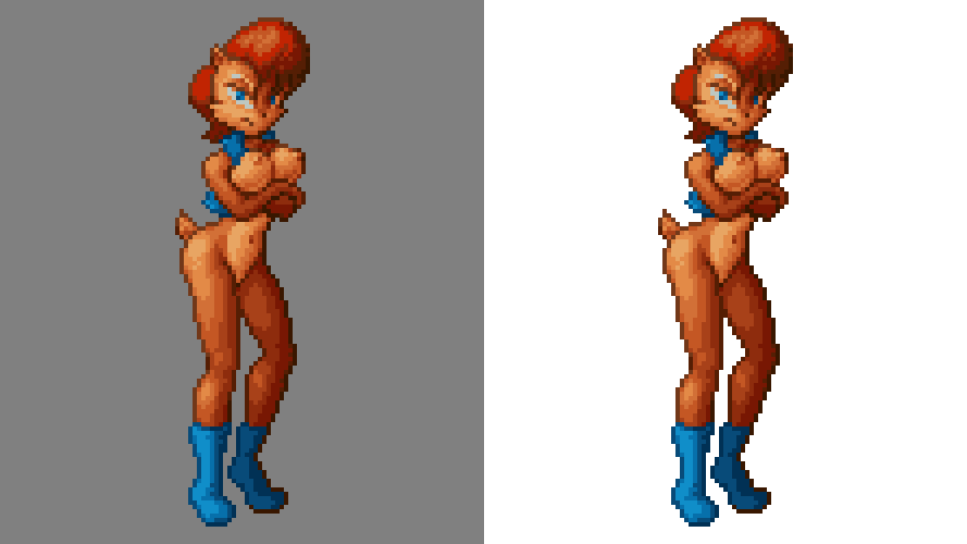 # I actually got the inspiration for this “side-by-side” anti-aliasing technique from one of Masahiro Sakurai’s videos about pixel art where he showed off how just a single shade of grey can create effective anti-aliasing. Thank you Sakurai-san, you are a credit to porn artists everywhere!