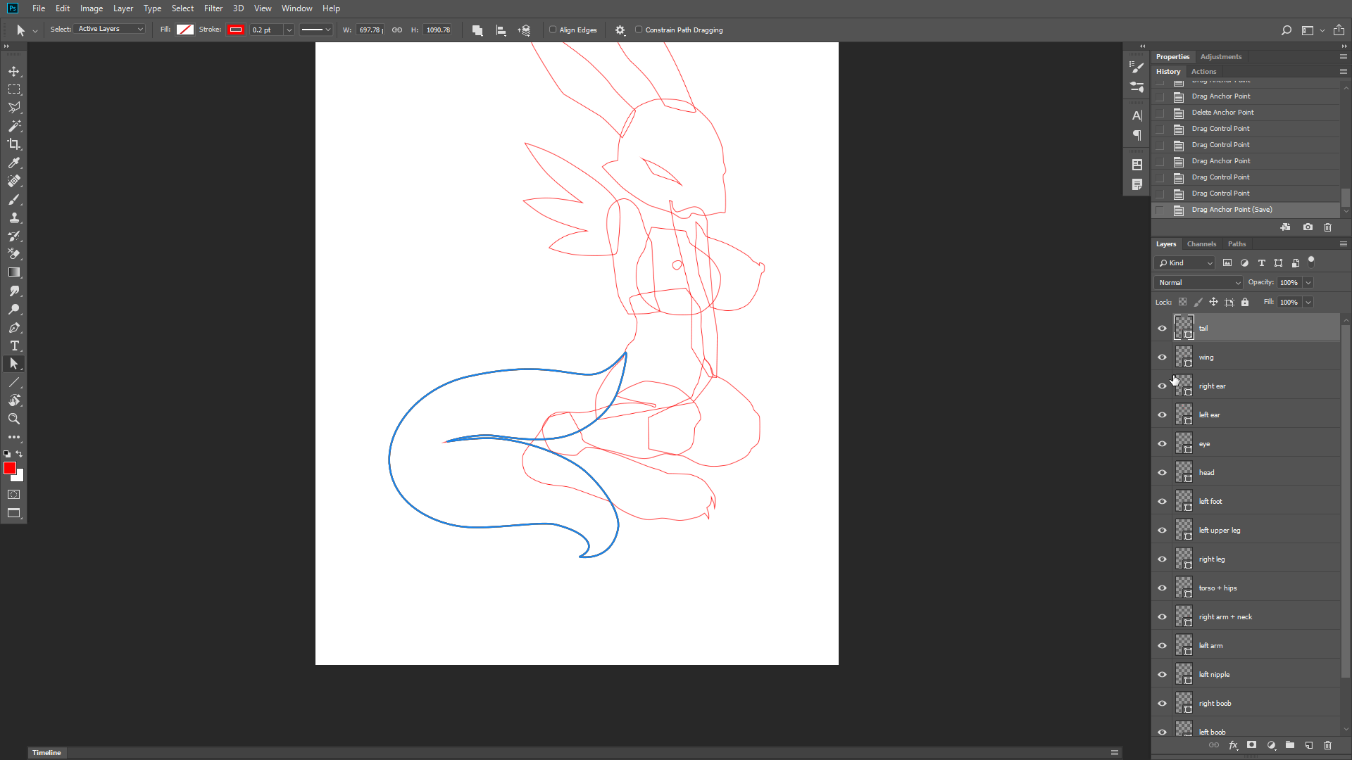 # I usually start with either a rough silhouette or I use vector shapes when I want to be more precise about planning the exact shape of the pose.