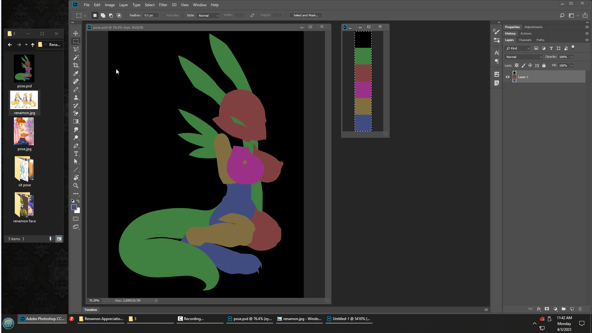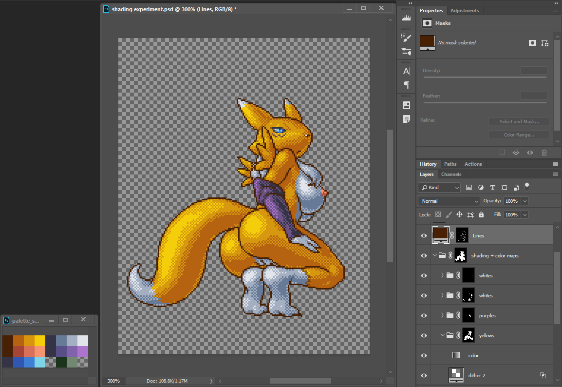 Create a folder for each of the sprite’s major colors. Having a flat-colored sprite makes it easy to select those colors to create these masks.