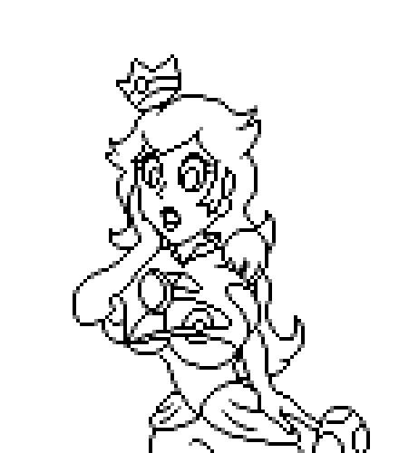 I export those lines back to Photoshop and shrink them in half using bilinear scaling. Now the picture is exactly the size I intend my pixel-art to be. As you can see it almost looks like pixel art at this point.