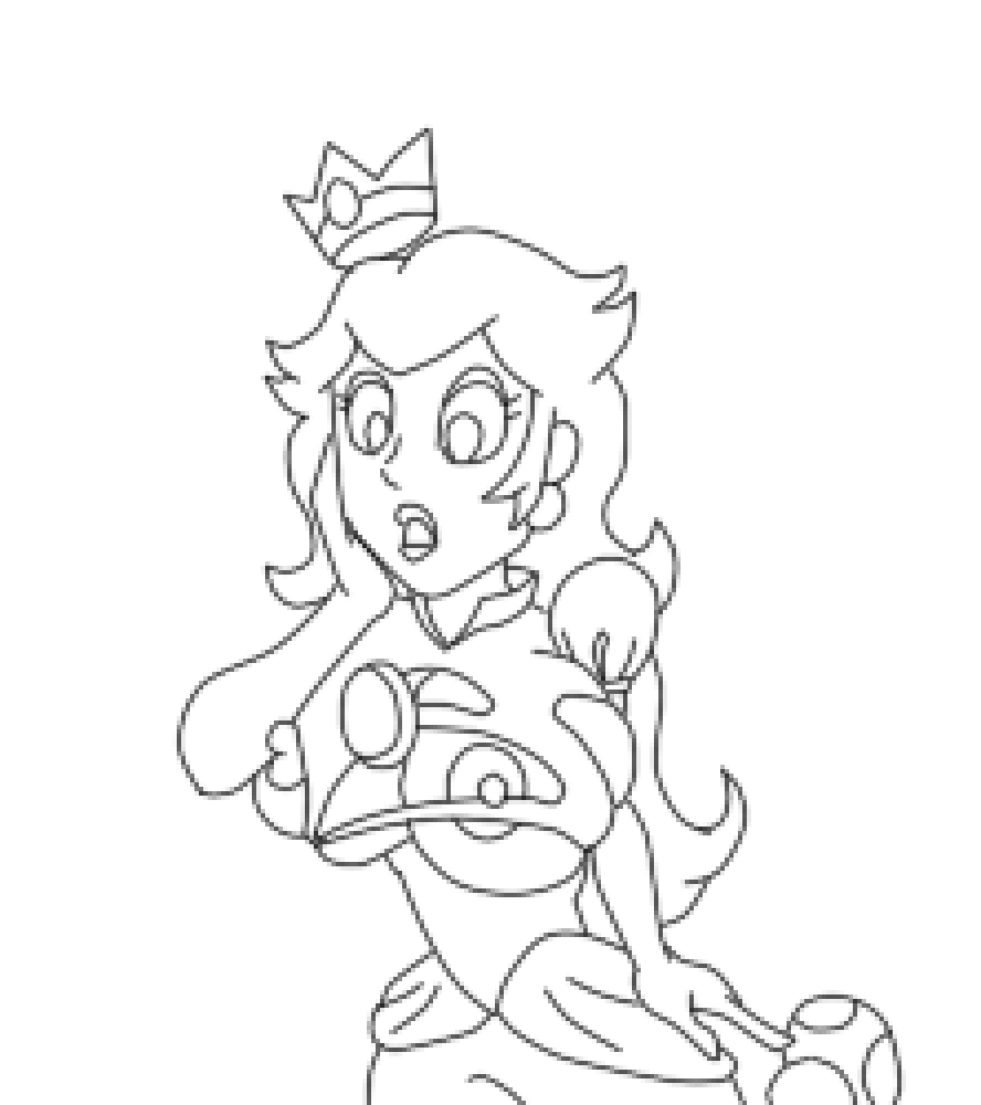 Then I scale the sketch to double that size. And ink over it with thin dark vector lines using Paint Tool Sai’s amazingly intuitive “curve” tool.
