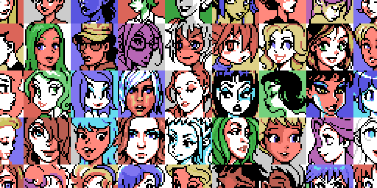 # Looking back I’ve noticed that the faces in some of my pixel art don’t always have clear details. Some work better than others. So I looked at the some pixel portraits drawn by JustinPaulcyr and realized that the trick might be to start very simple. Draw the face in pure black and white first, then add anti-aliased details later. After all if it works with 2 colors, it’s guaranteed to work with more.