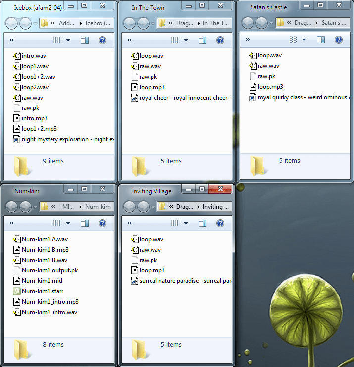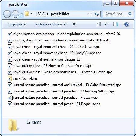 # I pick the best ones out of the possibilities and copy their shortcuts out of that folder. Then I open the original songs and export them to WAV files. If it’s a midi song I usually replace the instruments with a better soundfont like Musica_Theoria_v2 which I think originally came from sf2midi back when that site existed.