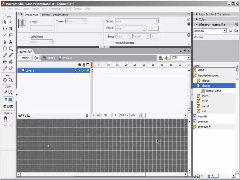 # I only need MP3 files while I’m editing the game. Later on when I convert the game into a single self-contained Flash file, I import the WAV files directly into Flash and it can internally compress the looping music with no gaps.